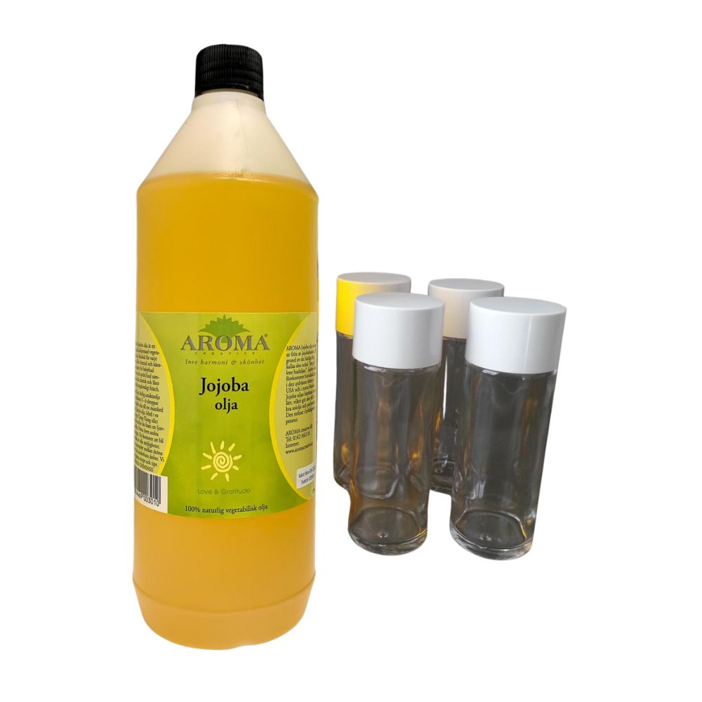 1 liter jojobaolja + 8 flaskor 125 ml + 8 Jojoba-etiketter