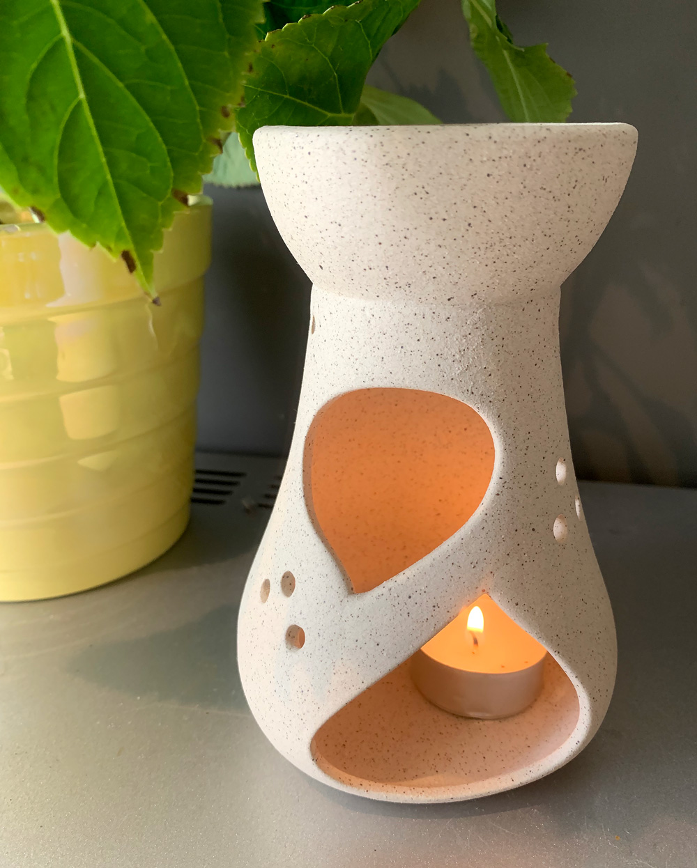 Vacker aromalampa i keramik med fast vattenskål. Färgen är naturMått: 16 cm hög, 11 cm diameter